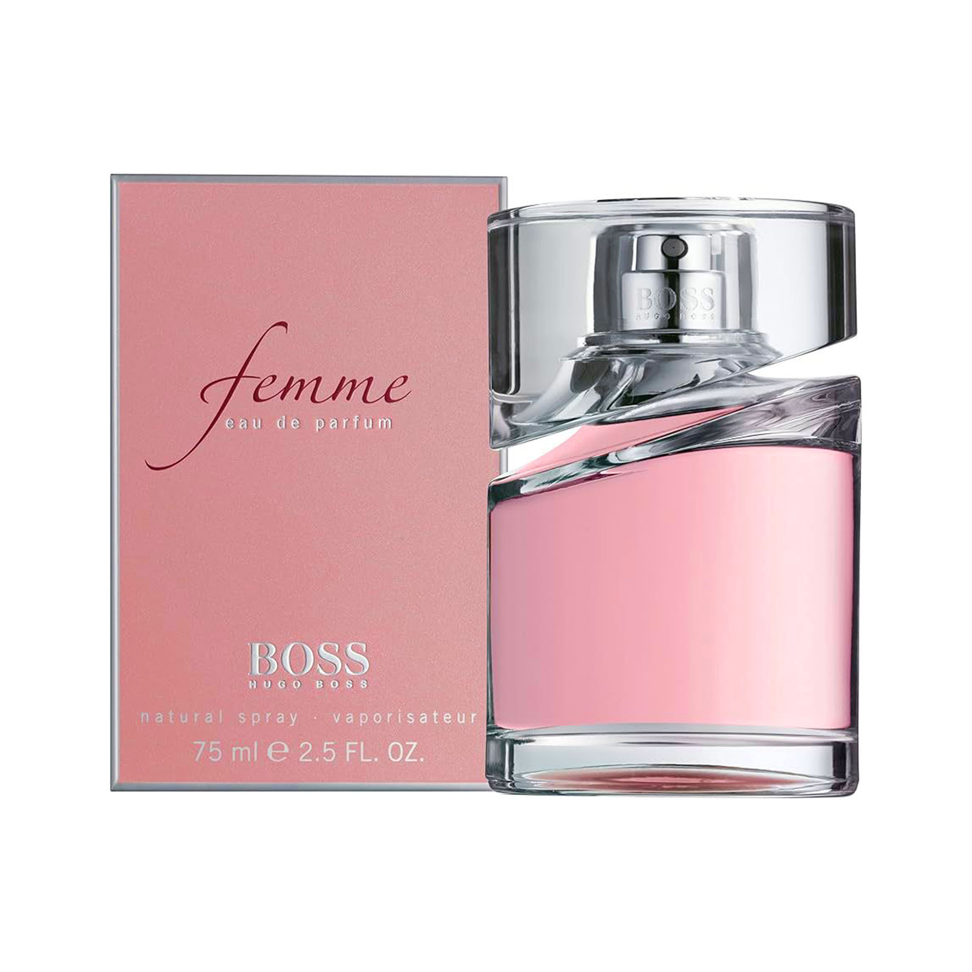 Femme Hugo Boss عطر زهري – فواكه للنساء . Femme صدر عام 2006. إفتتاحية العطر الفريزيا, تانجرين (اليوسفي) و الكشمش الأسود; قلب العطر الورد البلغاري, الزنبق و الياسمين; قاعدة العطر تتكون من أشجار الليمون, المشمش و العنبر.